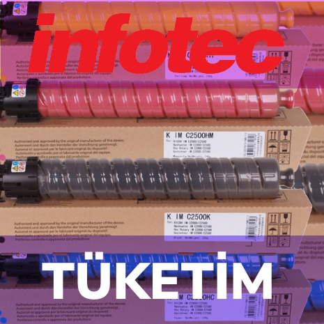İnfotec toner, İnfotec yazıcıların tüketim malzemeleri Ricoh ile aynıdır. Toner veya diğer tüketim ürünlerinin üzerindeki ürün kodu veya Type numarası ile sipariş verebilirsiniz (Örn. Type-1230D Toner). İnfotec drum ve yedek parçalarını da Elmakser’ den temin edebilirsiniz. Tüm Ricoh malzemelerini İnfotec yazıcınızda kullanabilir ve sipariş verebilirsiniz.